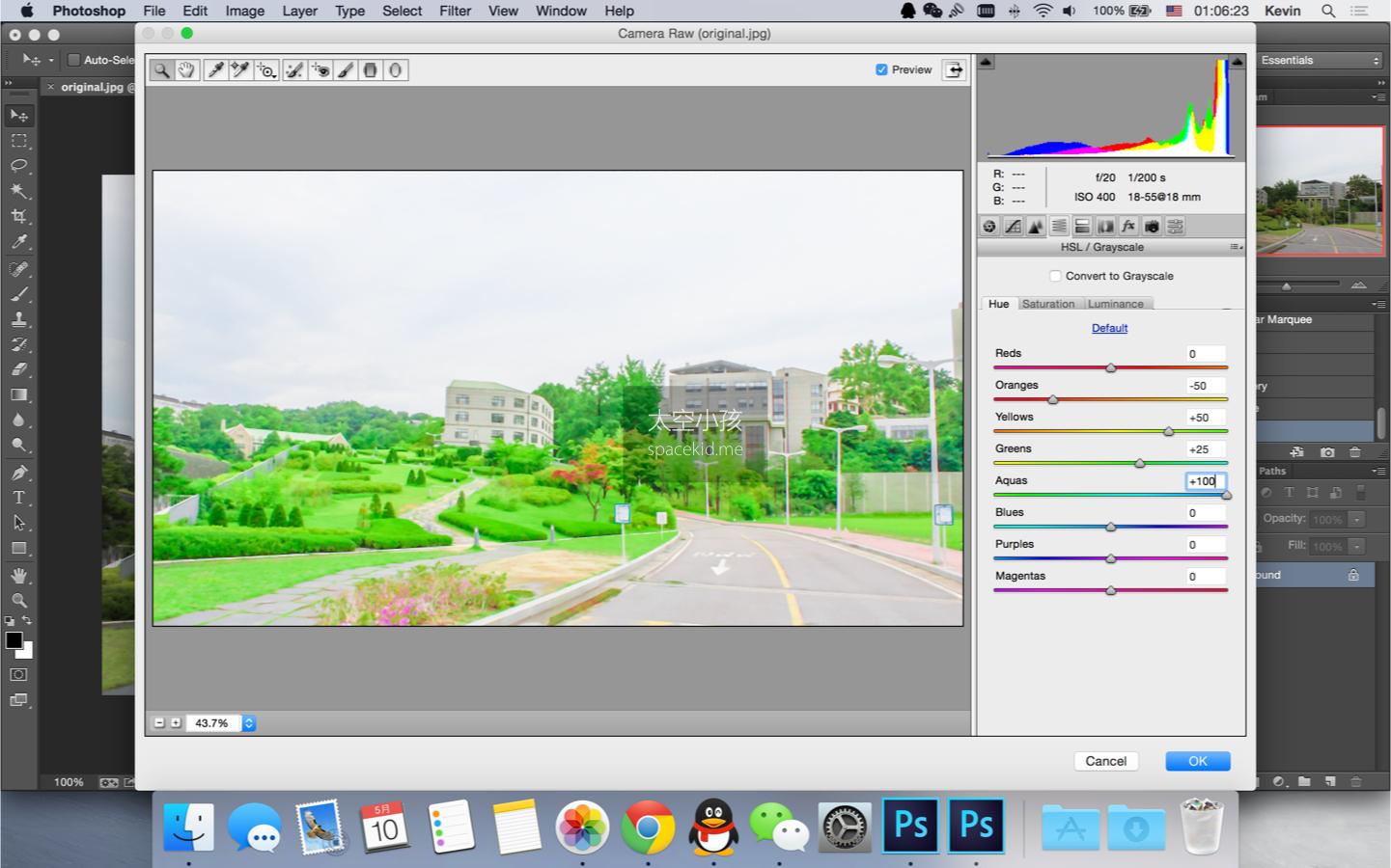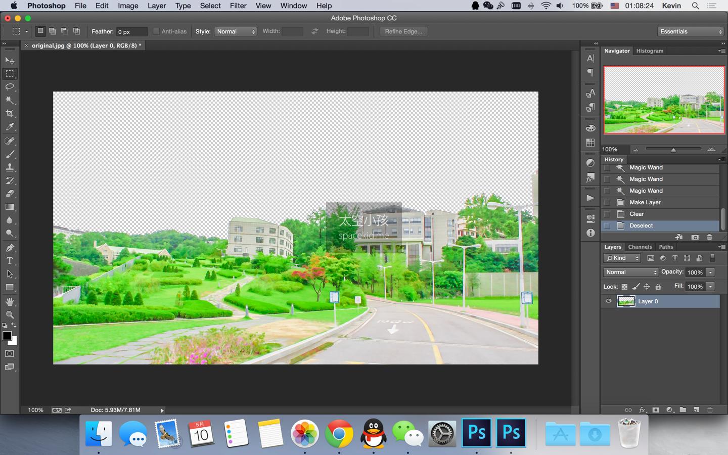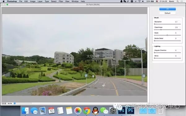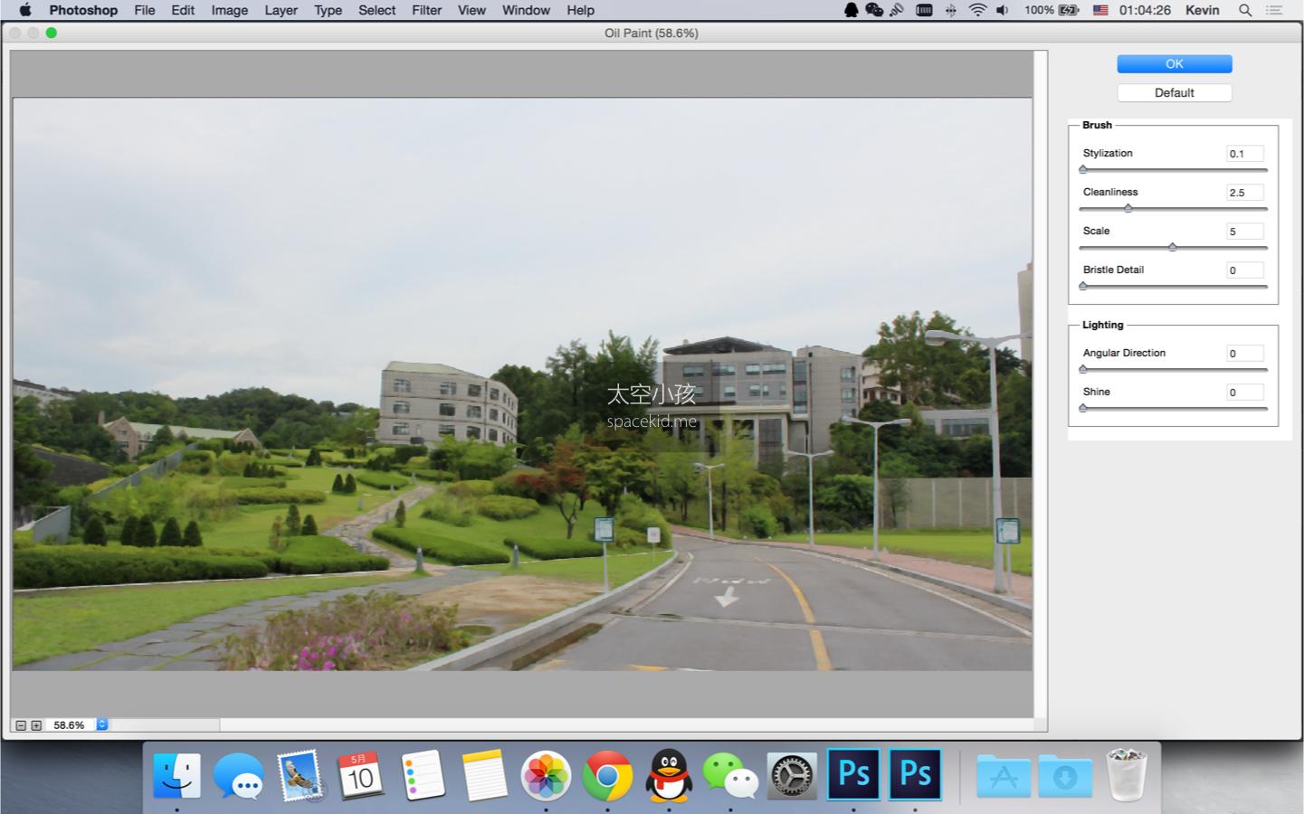 备注:我有两个 Photoshop,这是因为 Photoshop CC 2014 没有「油画」滤镜(然而这并没有什么卵用,你也可以只用「干画笔」滤镜),所以我用了 Photoshop CC。另外,原谅我的 Photoshop CC 是英文版的,因为简体中文版在 OS X Yosemite 下不能正常使用「滤镜库」功能。我会对所有操作进行中文说明。
