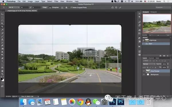 这个时候,打开 Photoshop,直接把原图裁成 16:9(这样看起来才像个电影画面嘛,他们说这是个人体工程学比例)。