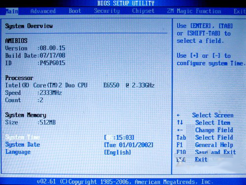 如果你开机的时候发现有American MegaTrends字样的话,就是AMI BIOS的主板。 开机后按住DEL键,可进入如下画面:
